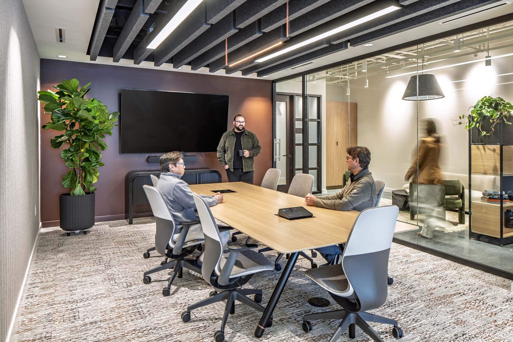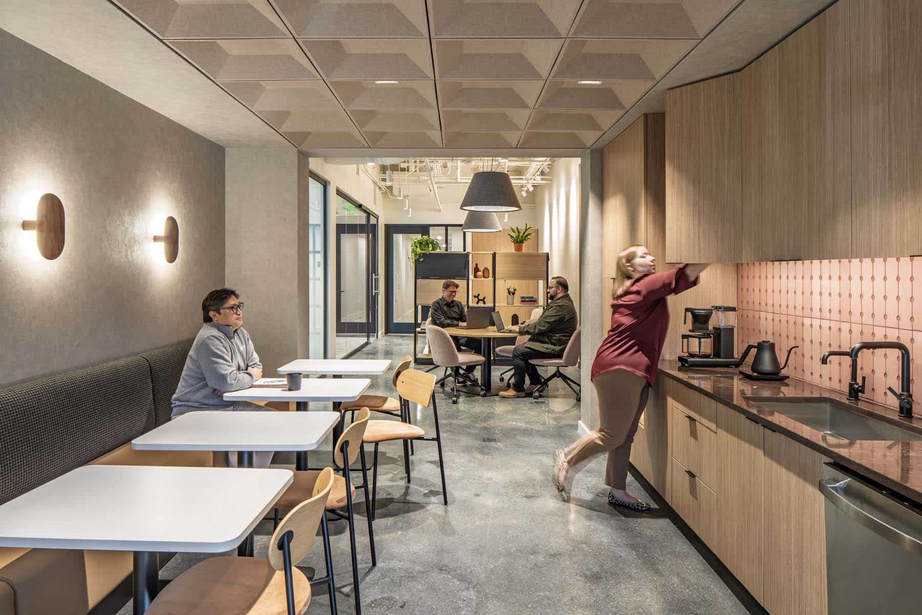 McGough partnered with JacobsWyper Architecture to renovate their new 2,672-square-foot office in Raleigh. The project began with a full interior demolition, including the removal of existing walls, flooring, ceilings, and portions of mechanical and electrical systems. The space was then rebuilt to a high level of finish, featuring polished concrete floors, demountable glass wall systems, custom acoustical ceilings, a new break area, and a sound masking system.